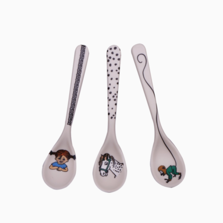 These spoons are a perfect start for when the little one is about to start eating on his own. The material composition gives the spoons a feeling of high quality. The children will love having their very own tablespoon illustrated with the well-known and beloved motifs from the Pippi Longstocking universe. An obvious gift idea for christenings, naming parties, birthdays or Christmas. You get 3 tablespoons which are BPA-free and can withstand being put in the dishwasher but not the microwave.