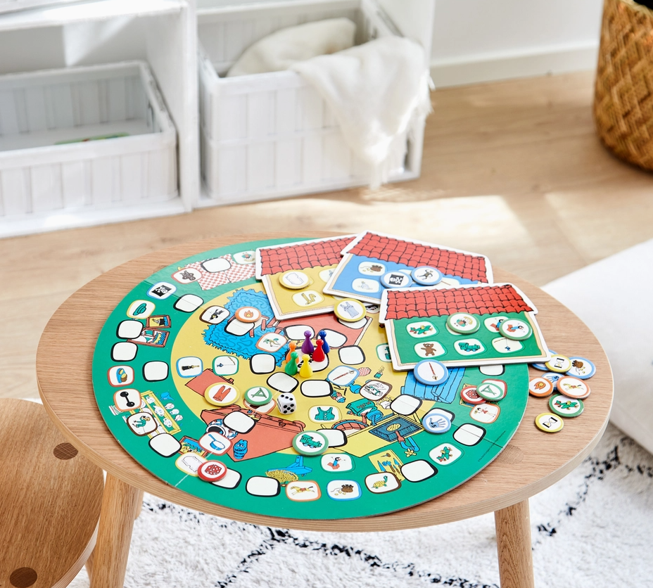 In this fun Pippi Longstocking family game, it is all about filling your board with the things you need to collect for your little Pippi house. Collect everything from Pippi's clothes, Pippi's animals, Pippi's kitchen items or maybe some things from Pippi's garden. Roll the dice and think carefully so that you go the right direction where you can collect things for your house. Fun board game for the whole family, where it is important to get the plate filled up as quickly as possible. A fun and strategic game for children and adults. This is a perfect family game, that helps developing your child’s ability to match objects, train their concentration, recognition, and their hand- and eye coordination. Suitable for children aged 4+ years Astrid Lindgren's (November 14, 1907 – January 28, 2002) work is unique and significant.